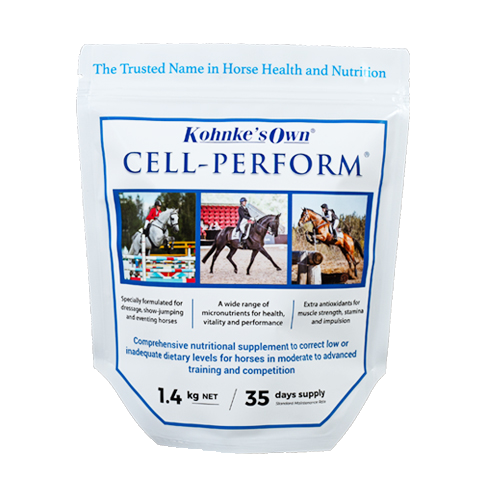 Kohnke’s Own Cell-Perform is scientifically formulated to contain a comprehensive blend of vitamins and minerals essential for horse health, vitality and performance. The formulation is regularly updated to the latest guidelines for optimum nutrition in all equestrian horses.