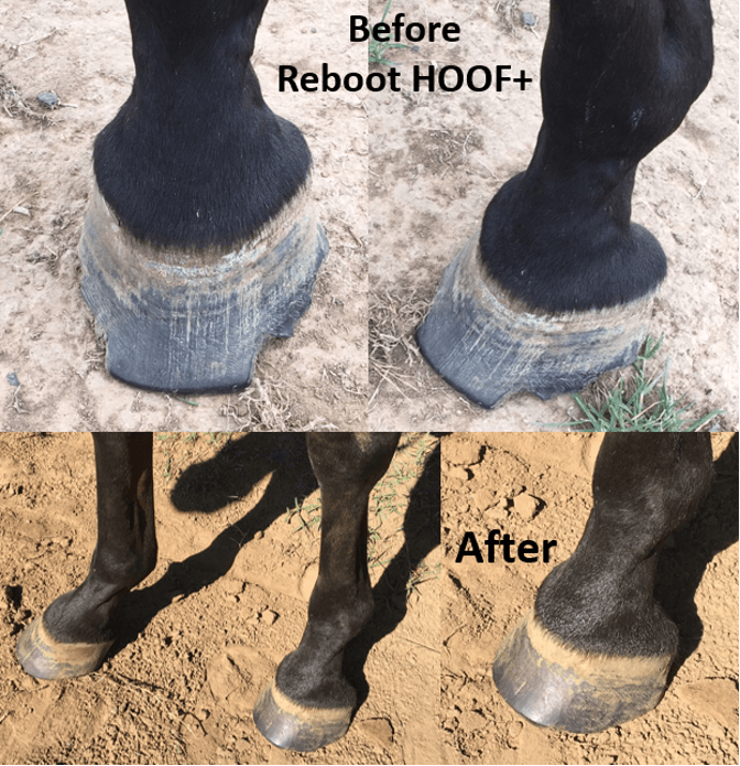 I was very impressed with the difference with Reboot HOOF+. His hooves were definitely stronger and harder.